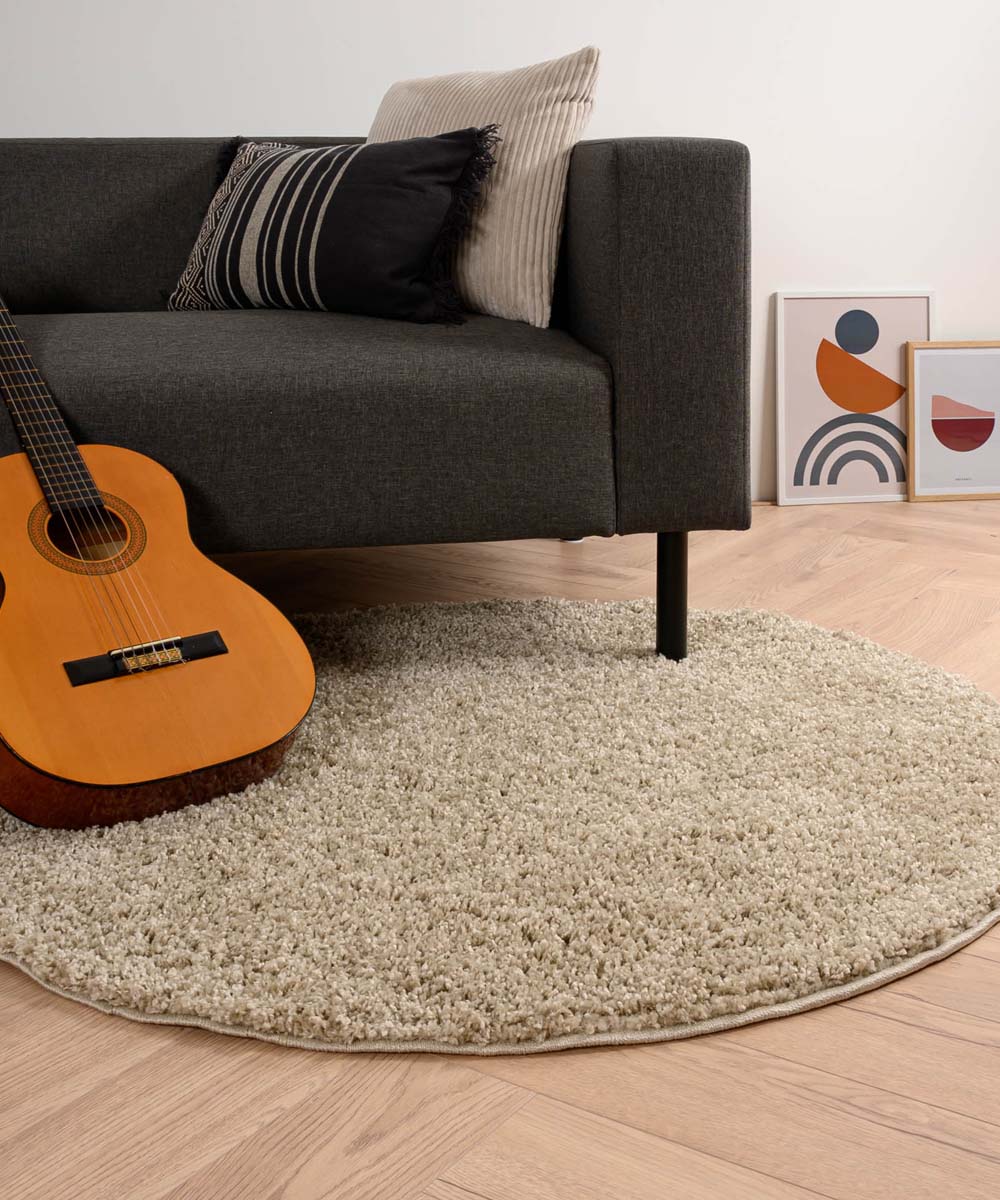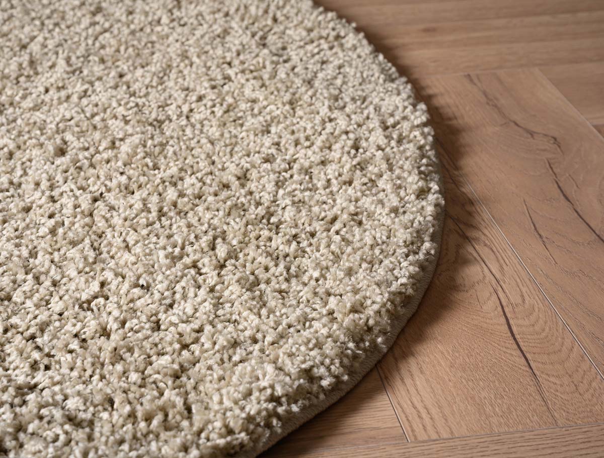 Rond hoogpolig vloerkleed shaggy Trend effen – champagne -50%