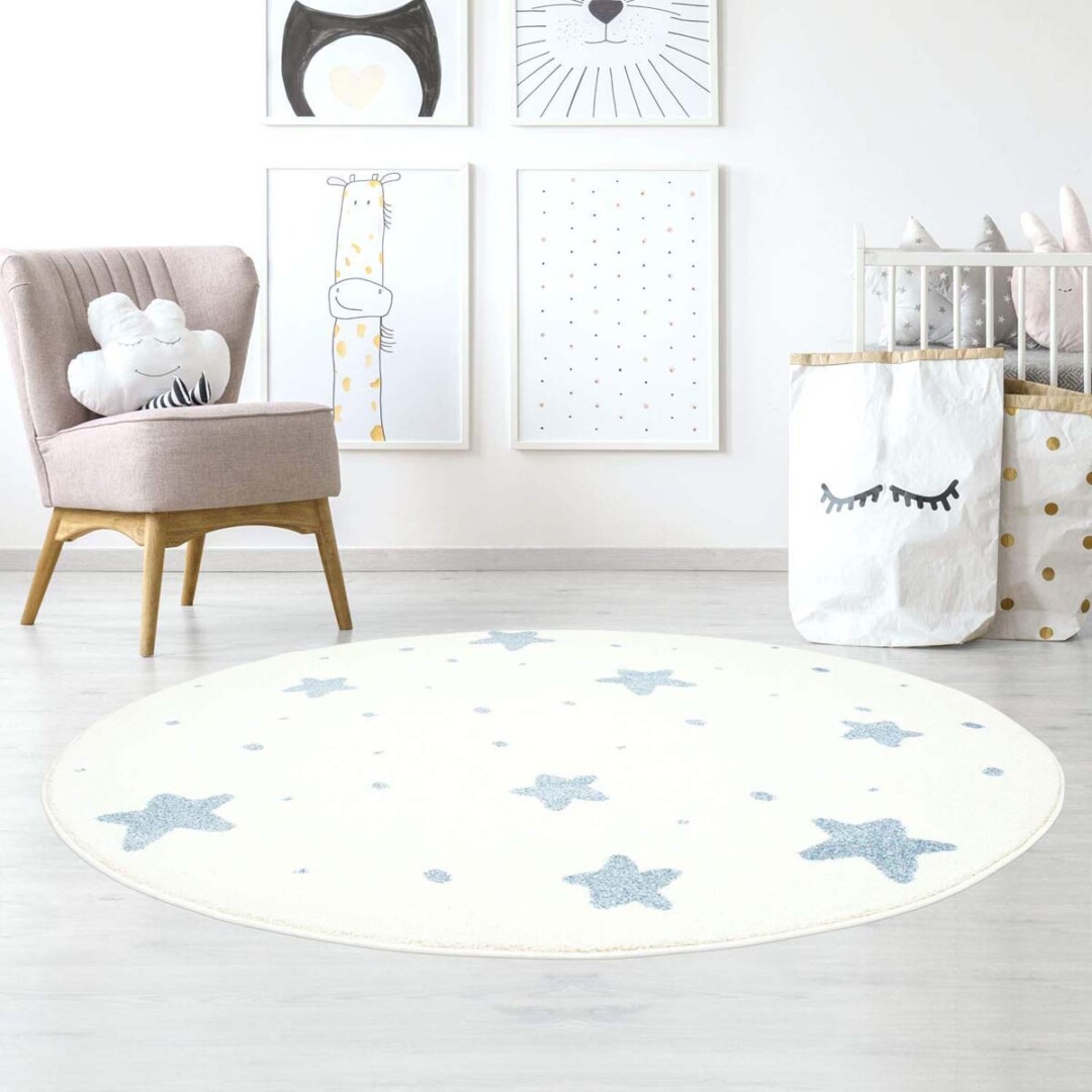 Rond vloerkleed kinderkamer Kleine Sterren 3D – crème/blauw -36%
