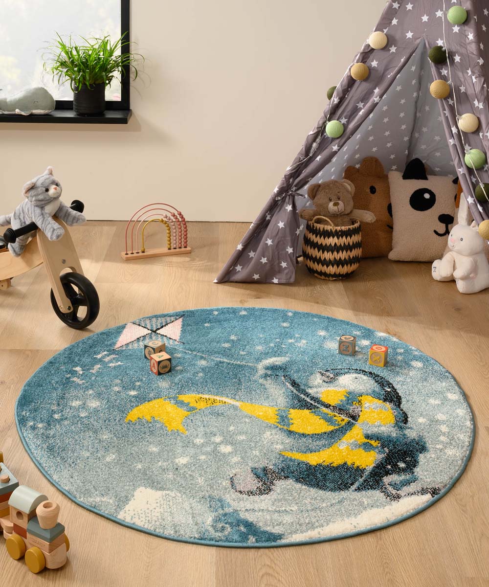Rond Vloerkleed kinderkamer Pinguïn – Dreams blauw -33%