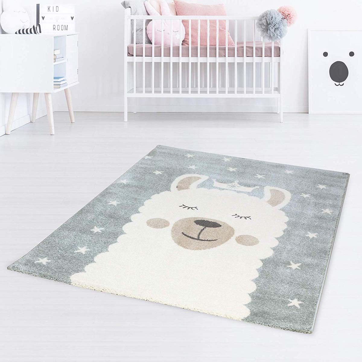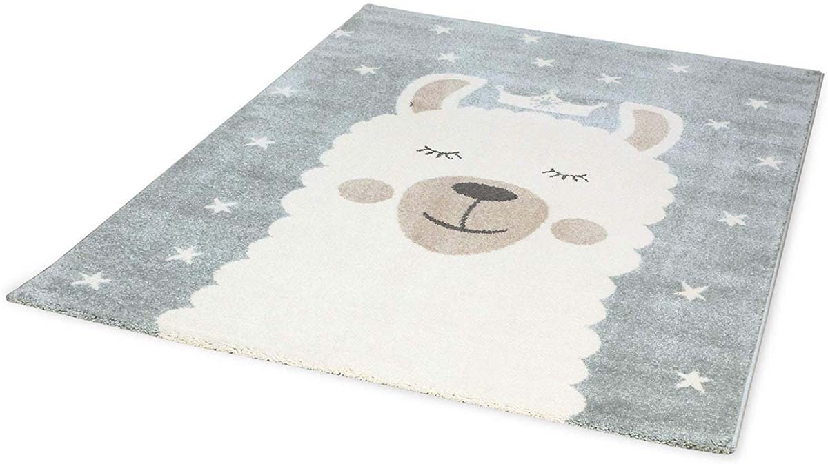 Vloerkleed kinderkamer Sleepy Lama – blauw/wit -46%